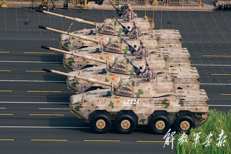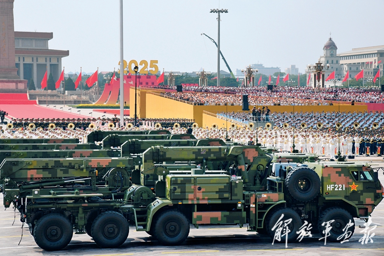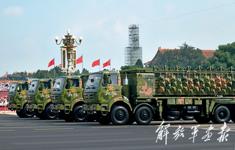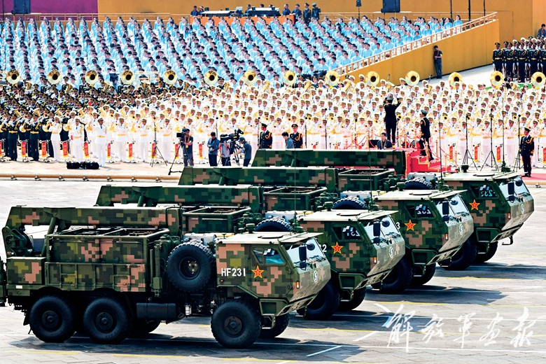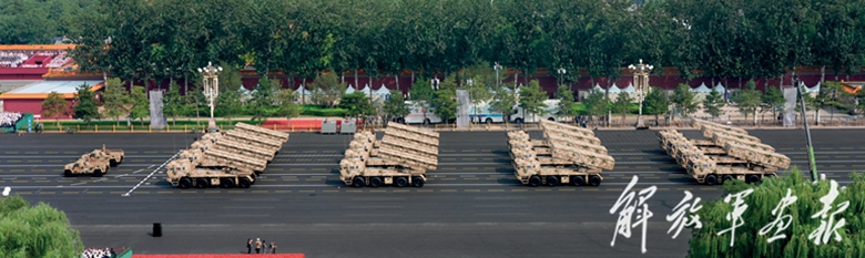 由2台指挥车和16辆车组成的远程火炮方队,接受党和人民的检阅。