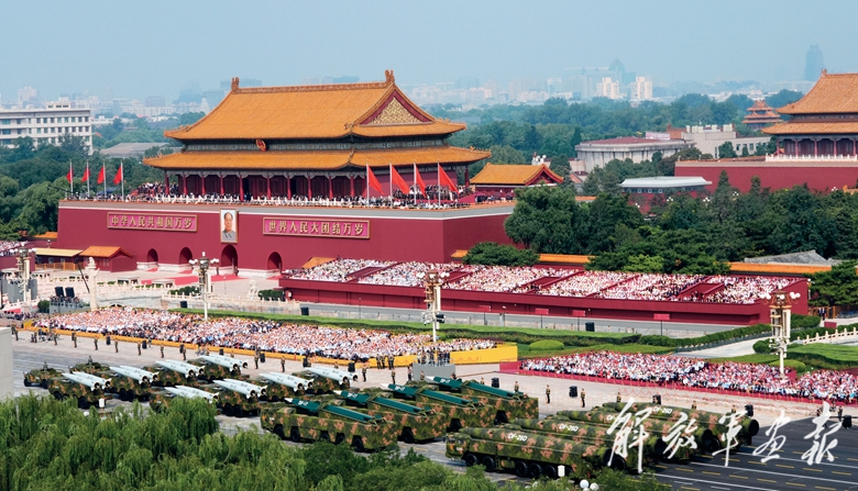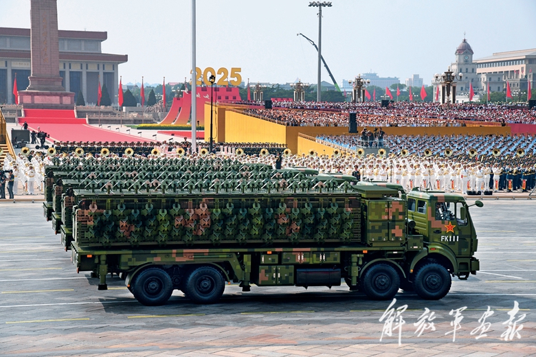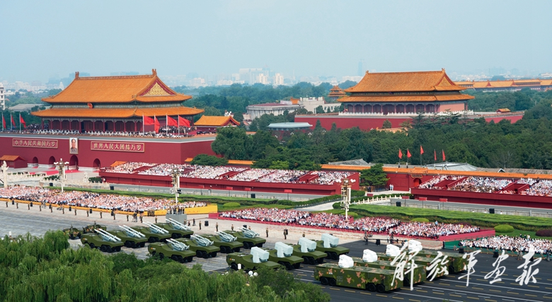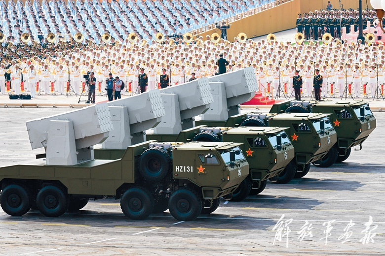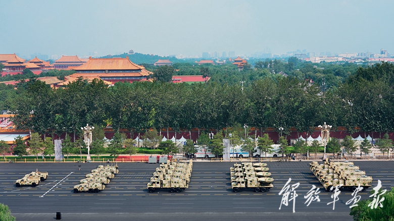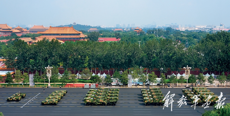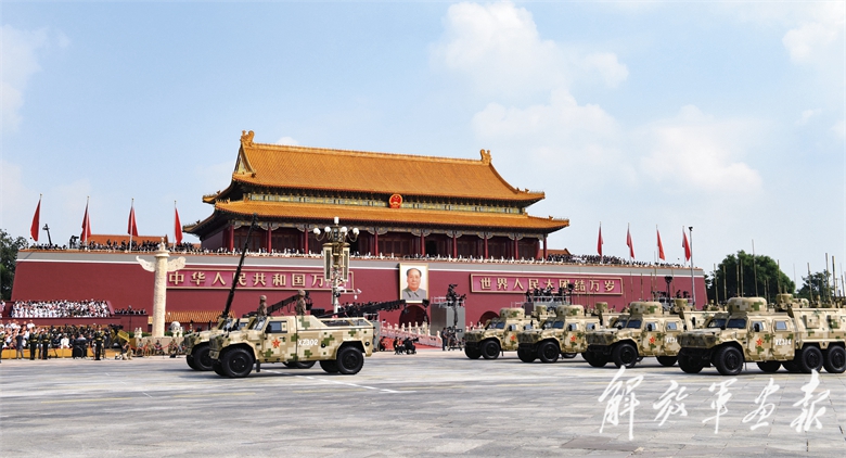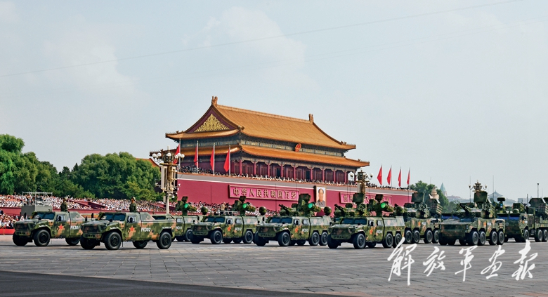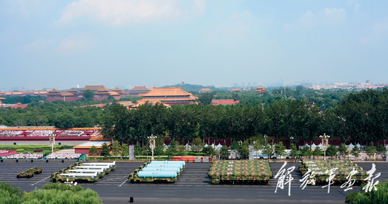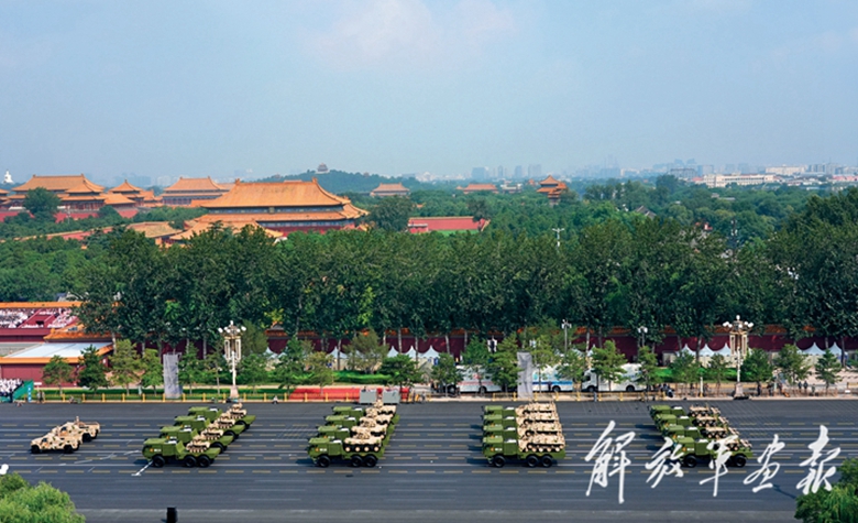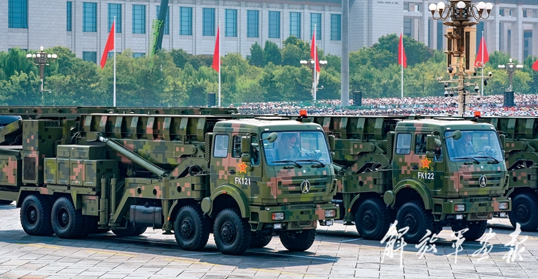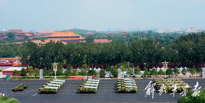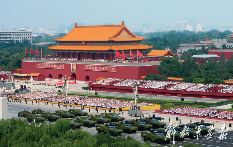 伴着隆隆的声浪,远程火炮方队驶向天安门广场。