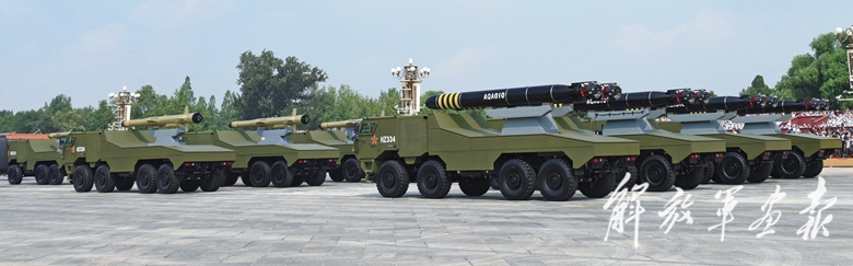 远程火炮方队接受检阅。