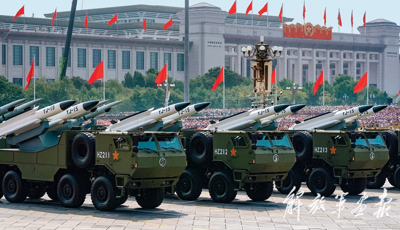 对空抗击方队通过天安门广场,光荣接受检阅。