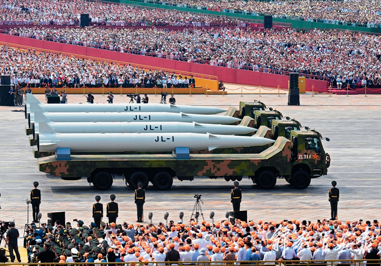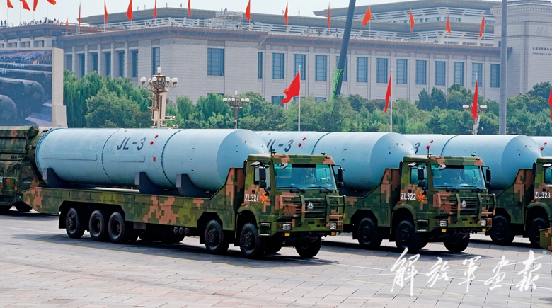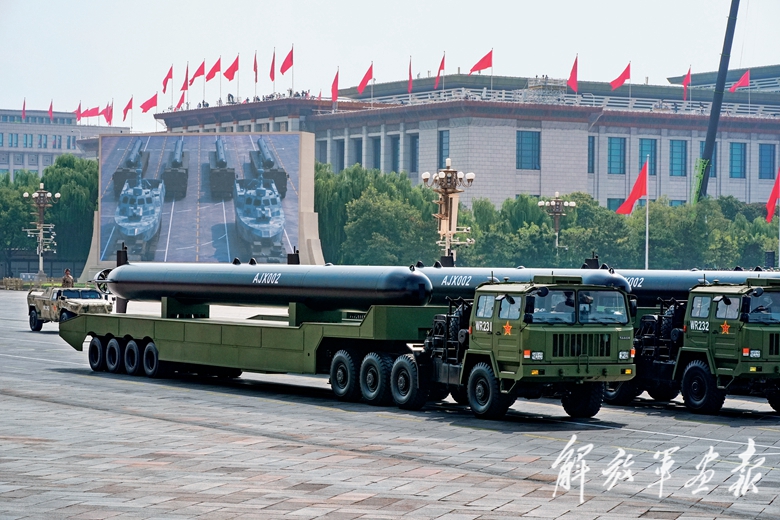 核导弹第一方队首次集中展示我军陆、海、空基“三位一体”战略核力量。