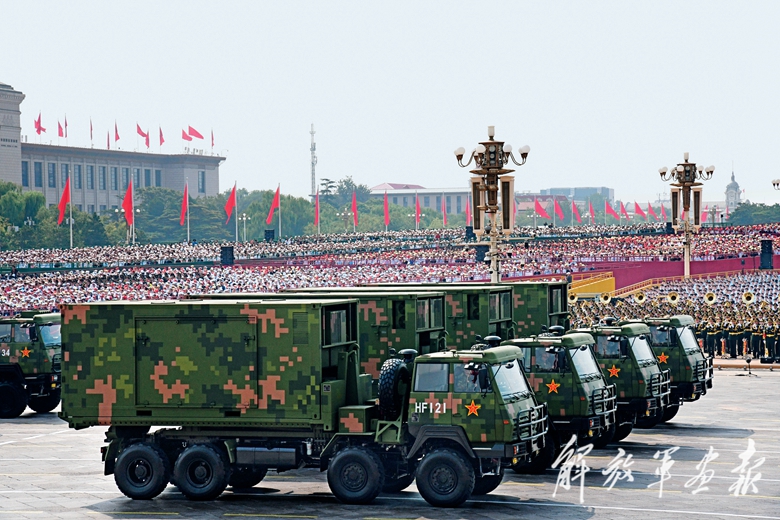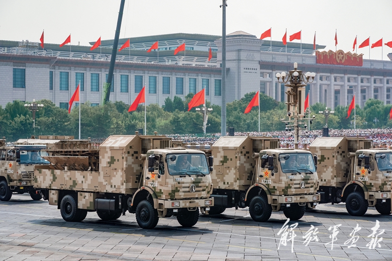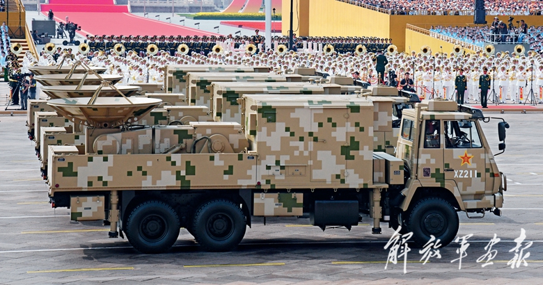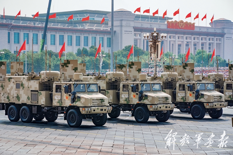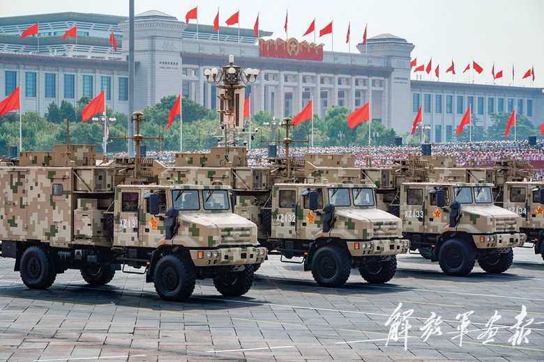 电子对抗方队光荣受阅。