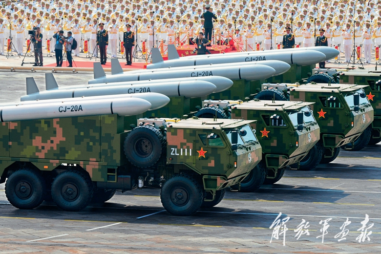 长剑-20A导弹接受检阅。