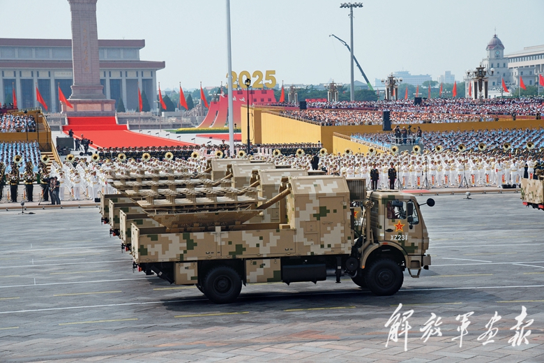 电子对抗方队展示电磁利器。