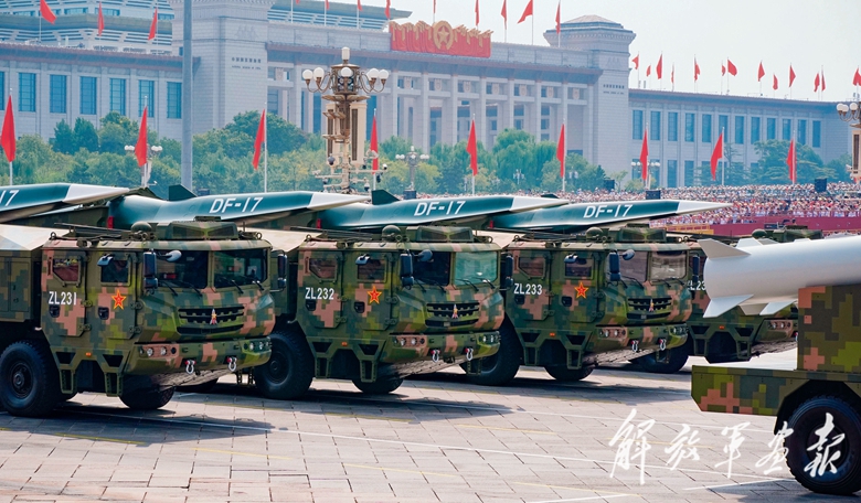 由火箭军和空军联合组成的高超声速导弹方队,威武庄严地通过天安门广场。