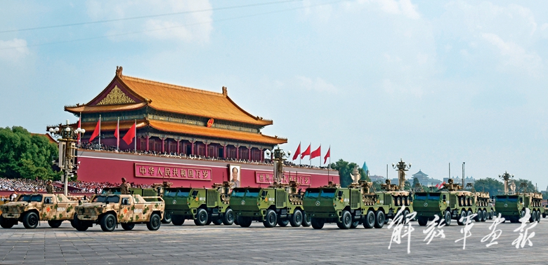 装备保障方队隆隆通过天安门广场,接受党和人民检阅。