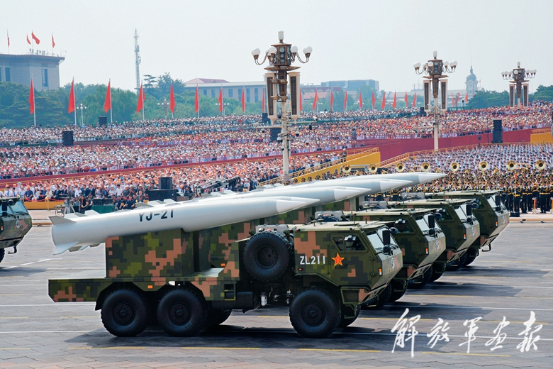 这个方队受阅的鹰击-21、东风-17、东风-26D导弹,飞行速度快、突防能力强、命中精度高,是具备全天候作战能力的新型“撒手锏”。