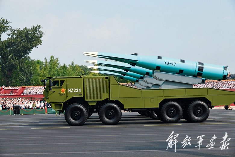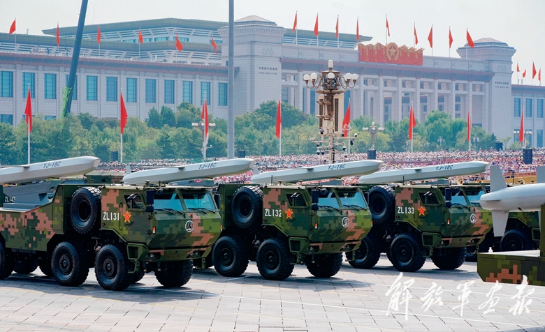 反舰导弹方队展示打击海上之敌的尖兵利器。