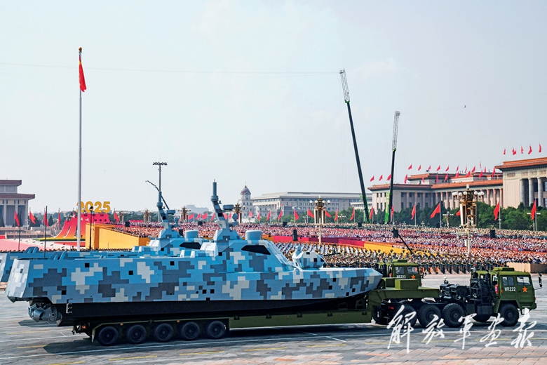 伴随着隆隆轰鸣,海上无人作战方队缓缓驶向天安门,接受党和人民检阅。