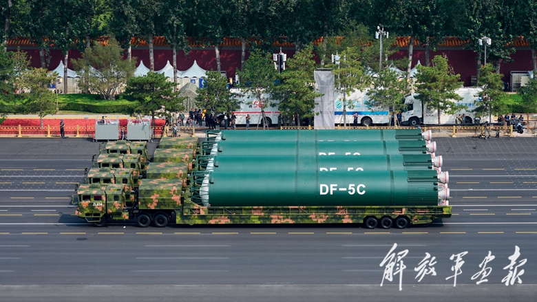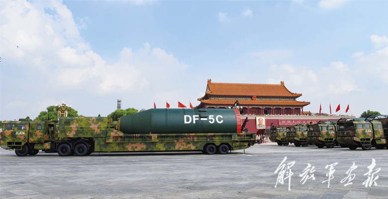 核导弹第二方队“东风-5C”液体洲际战略核导弹接受检阅。