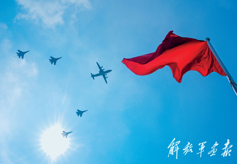 舰载机梯队飞临天安门广场上空。(摄影/新华社记者 王 晔)
