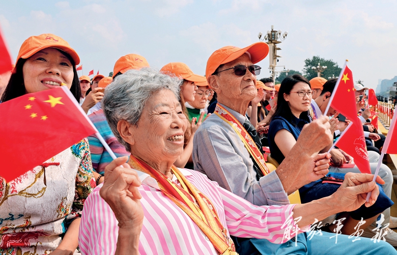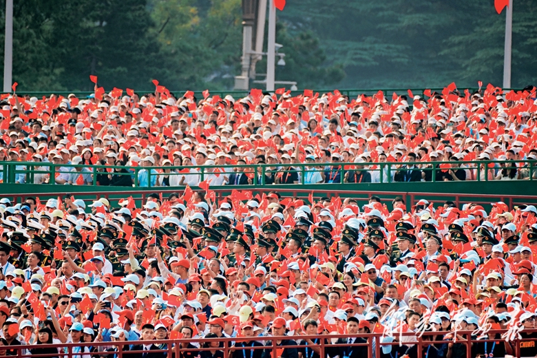 现场观看阅兵式的群众激动万分。(摄影/新华社记者 费茂华)