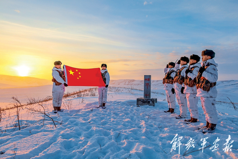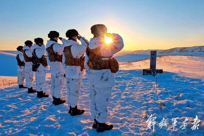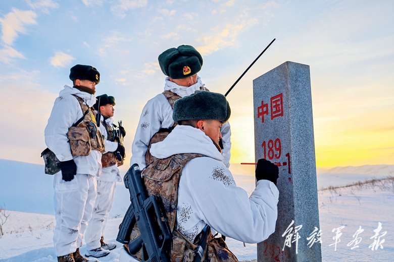 官兵仔细检查界碑和周边情况,认真维护监控设备、隔离桩等设施。杨铭彪用手轻轻拂去界碑上的积雪,不禁回忆起自己执行的第一次巡逻任务。那天,也是这样寒冷的天气,他和2名战友爬过一个又一个雪坡,深一脚浅一脚地前行,跋涉4个小时才到达界碑。此时,他的双腿已经不听使唤地直打颤。第一次触摸界碑、第一次在界碑边对着国旗宣誓,杨铭彪攥紧右拳、大声宣读誓词,内心激动万分,热泪止不住地从脸庞滑落。返回时,杨铭彪在巡逻记录本上写道:“巡逻路上,再难走的路也要坚持走到底,因为界碑在那里。”