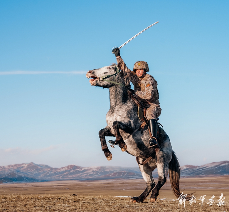 马厩前,哨长曾祥鹏和上等兵田西阳正为即将开始的巡逻做准备。检查携行装具,为战马系紧肚带……曾祥鹏指着一匹体型矮小、敦实温顺的蒙古马说,这位“无言战友”,将陪伴他执行此次巡逻任务。