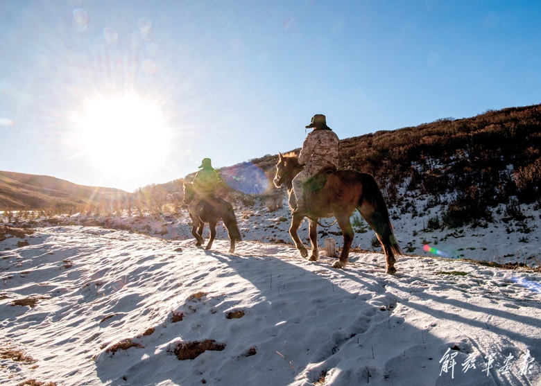 哨所官兵策马巡线。