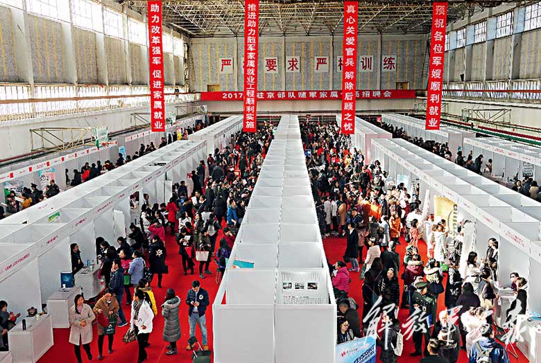 11月23日,2017年驻京部队随军家属专场招聘会在京举行。492家北京市及中央在京企事业单位参与,提供就业岗位近4000个,4000余名随军家属前来应聘。