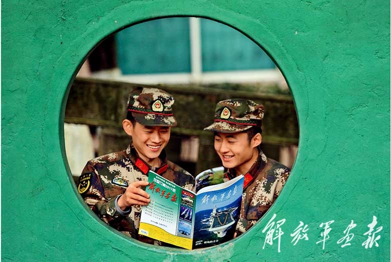 在该支队,《解放军画报》深受官兵喜爱。南川中队上士张祖武说:“《解放军画报》是我成长之路的好帮手!多读画报,能帮助我们这些基层官兵提高政治素质、增长见识、开阔视野,还能提高美学修养。”